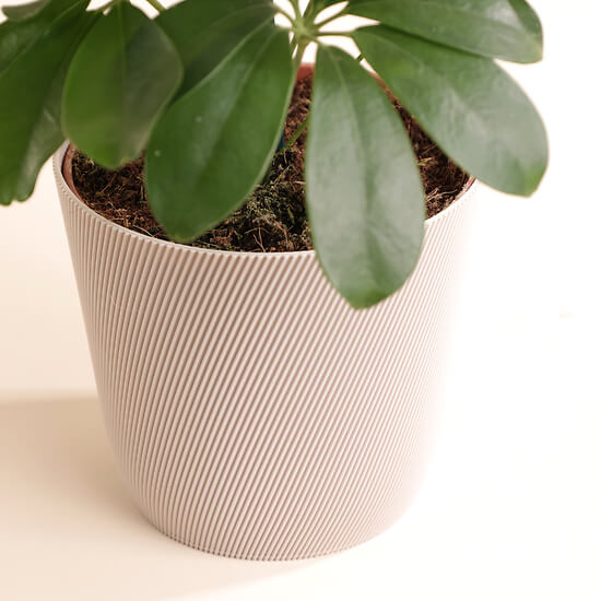 With its 13.1 cm diameter and 12 cm height, this Svala cachepot blends texture and function. Made in Switzerland from PLA.