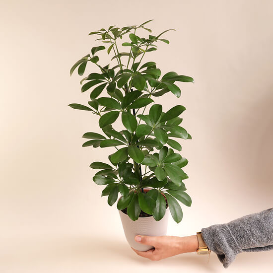 With its bright, graphic foliage, the Schefflera Arboricola Nora brings a touch of freshness and serenity to your home. Standing 55 cm tall, it unfolds gracefully in its 13 cm Svala pot, highlighting its natural style. A symbol of balance and vitality, it invites nature to flourish in your space.