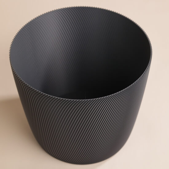 The largest Svala model measures 17.1 cm in diameter and 14.8 cm in height. Elegant and durable, made in Switzerland from PLA.